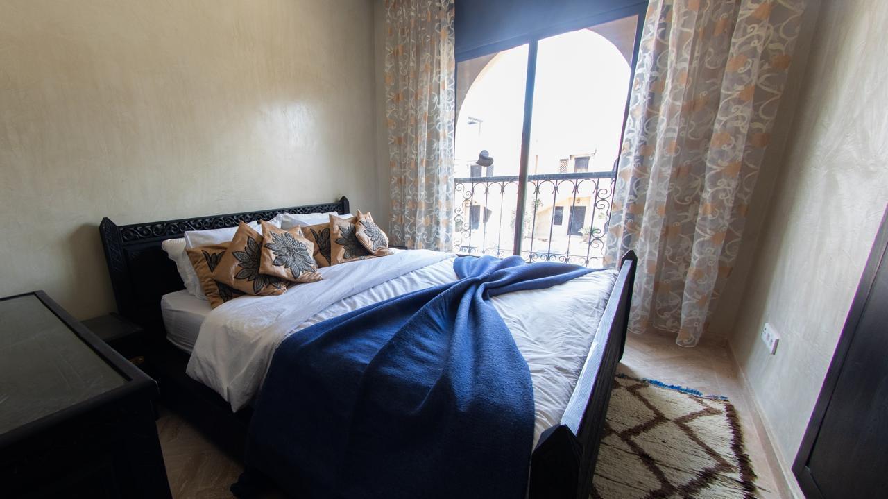 *Appartement meublé 2 chambres en résidence sécurisée avec grande piscine à route de Fes (proche Atakadao)
