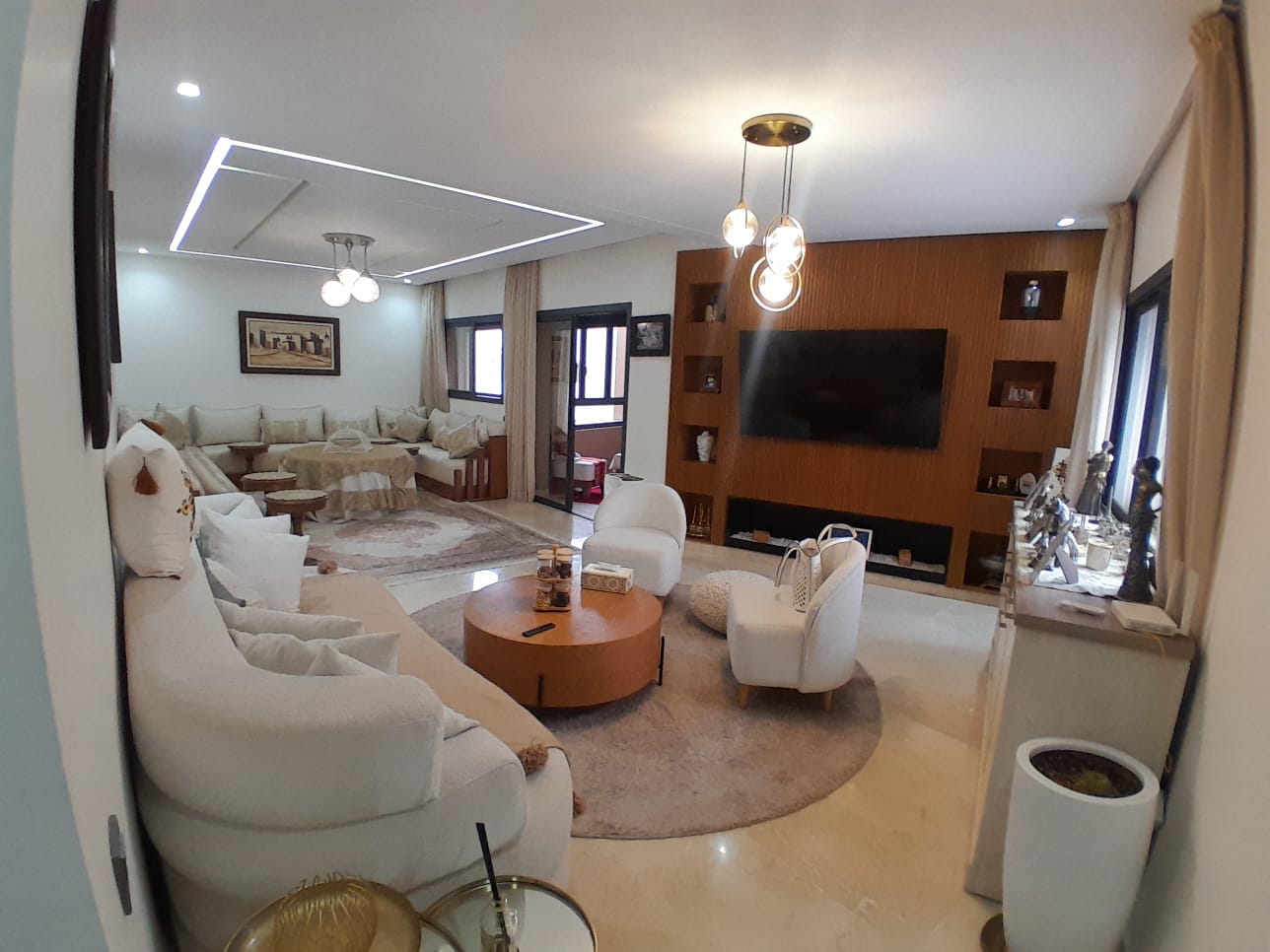 Ce superbe appartement de 128 m2 situé au 4e étage d’une résidence moyen standing + fermée, sécurisée et baigné de lumière naturelle, il offre un cadre de vie et raffinée avec une vue imprenable sur la piscine.