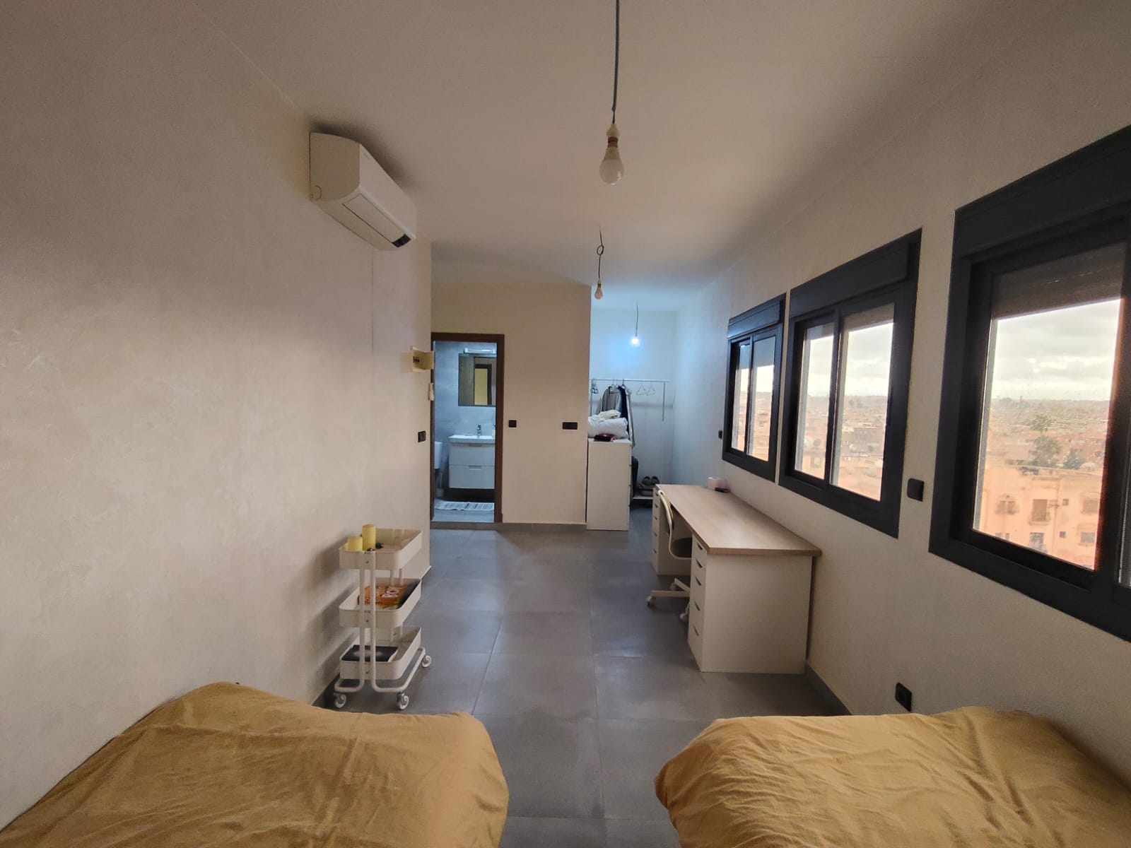 Situé sur la route de Casa, cet appartement bénéficie d’un emplacement stratégique à proximité des commerces, écoles et axes principaux, tout en offrant un environnement calme et résidentiel.