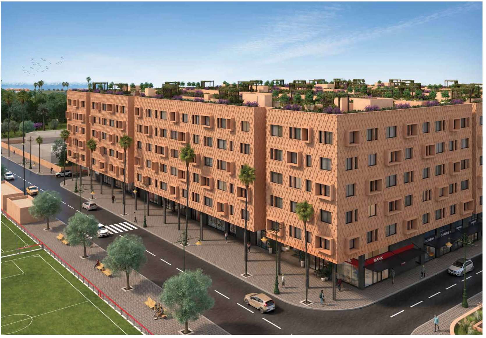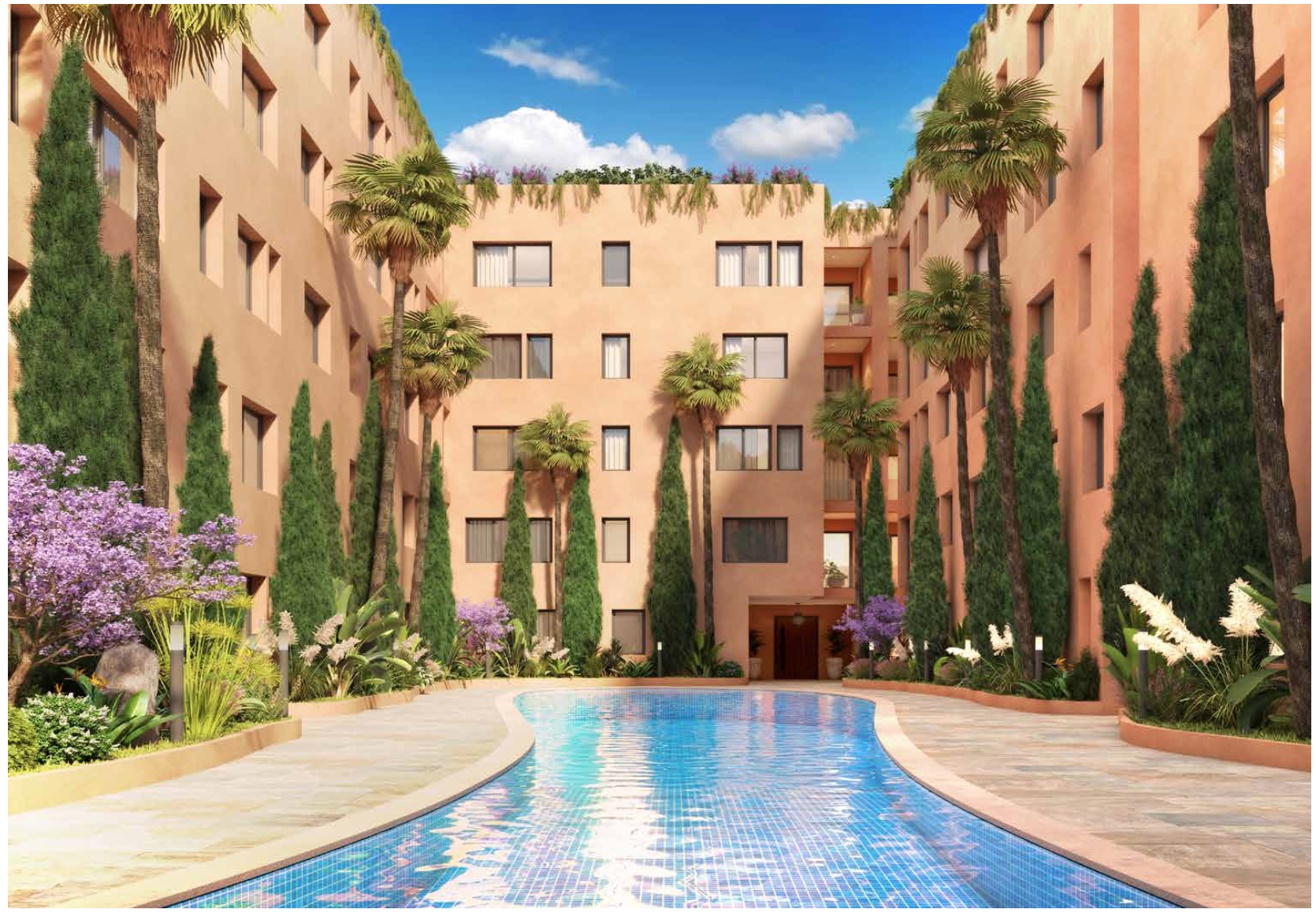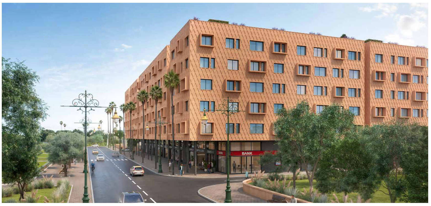 *Projet appartements et duplex (magasins et bureaux) 1 à 3 chambres de 50m2 à 106m2 en résidence sécurisée avec 3 piscines à Azli (15min de la gare) – Livraison prévue 2027 MARRAKECH