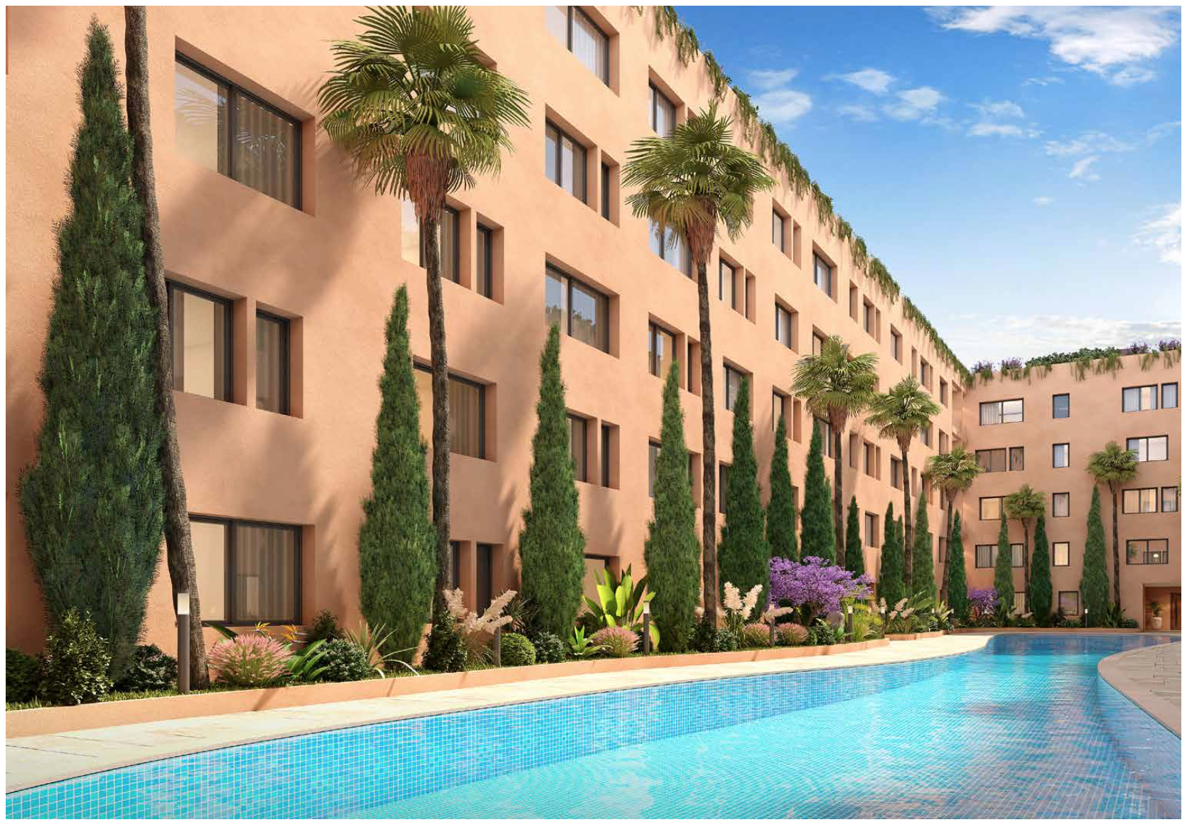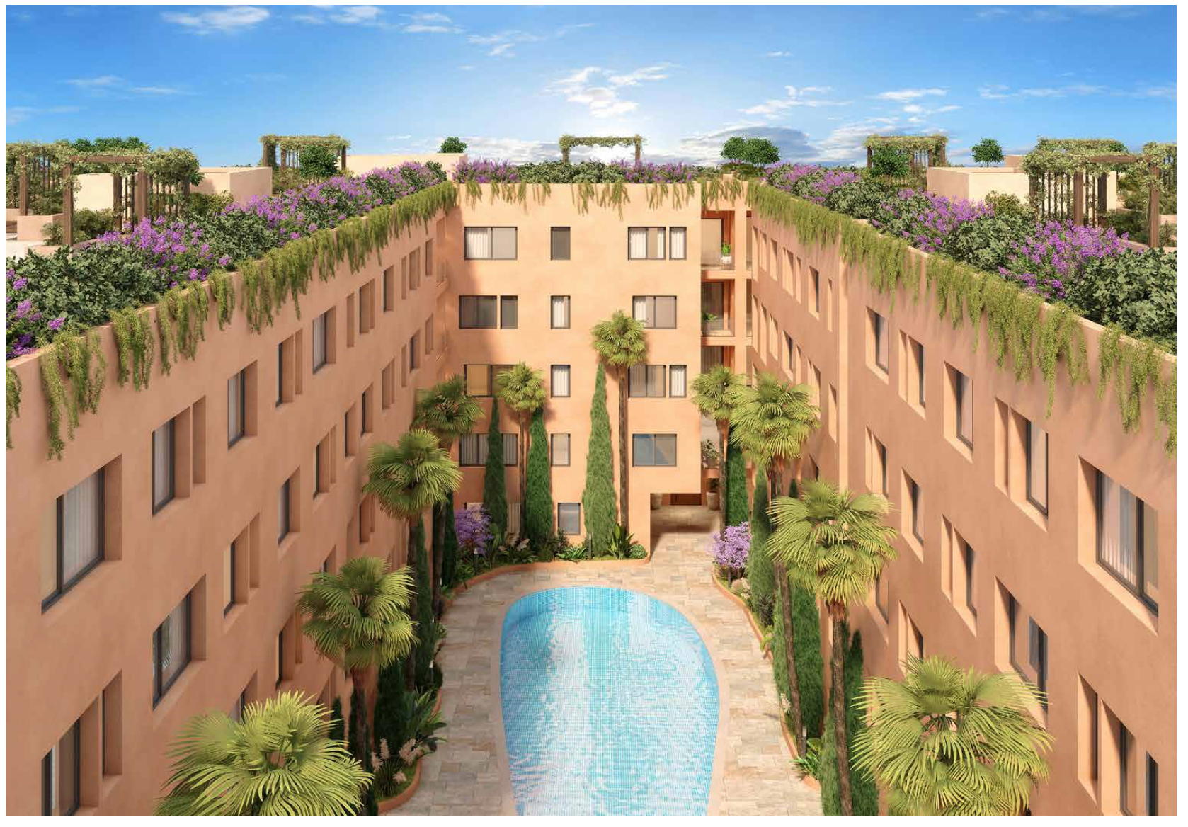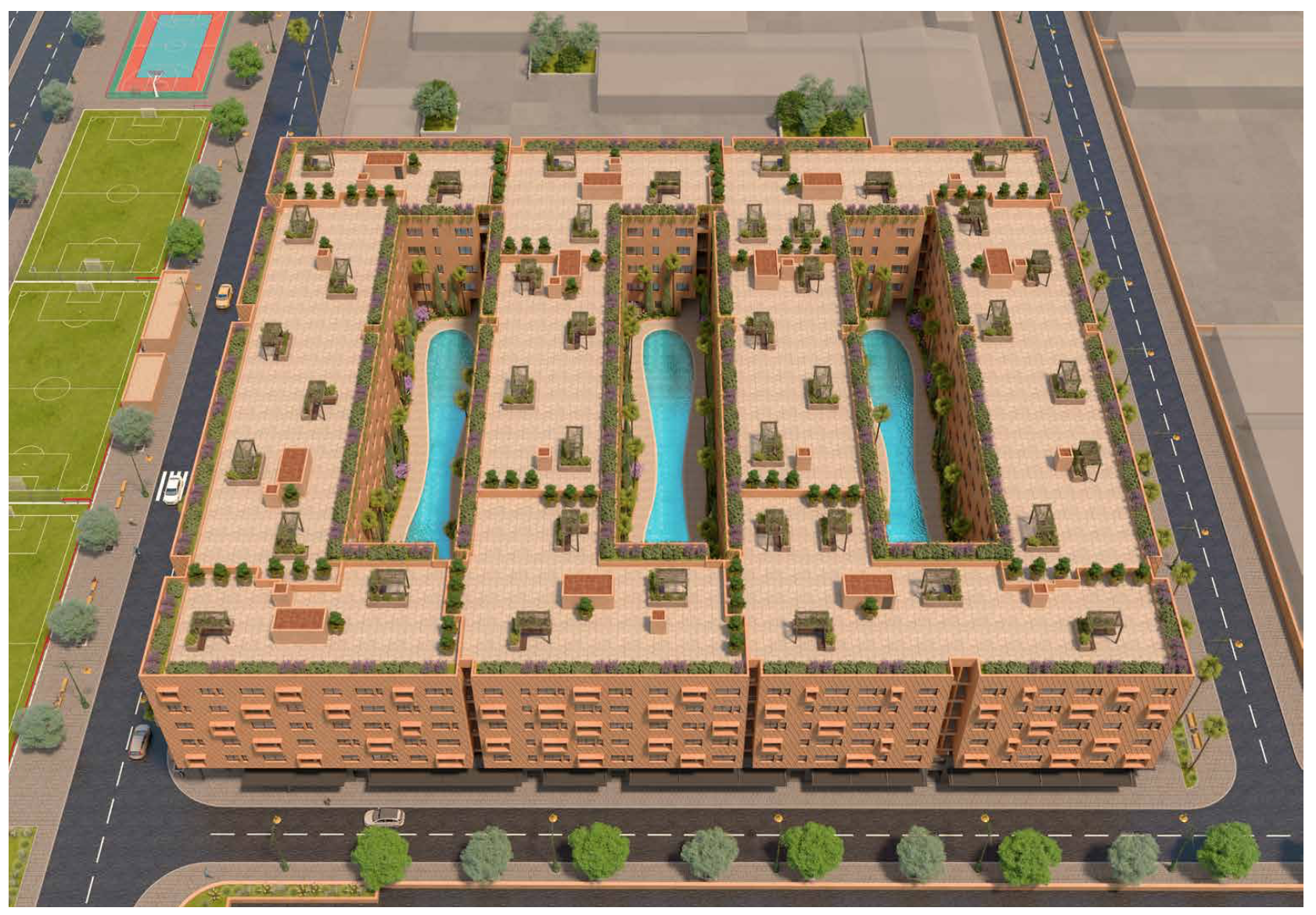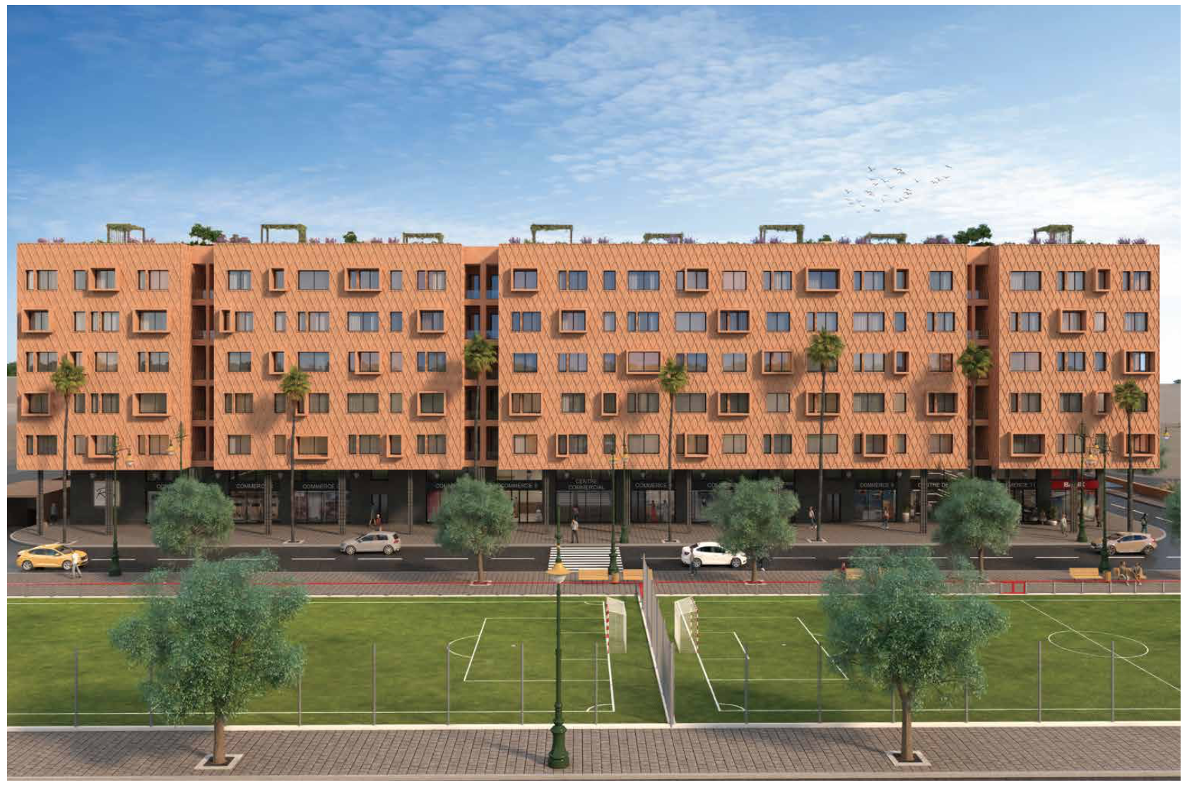 *Projet appartements et duplex (magasins et bureaux) 1 à 3 chambres de 50m2 à 106m2 en résidence sécurisée avec 3 piscines à Azli (15min de la gare) – Livraison prévue 2027 MARRAKECH