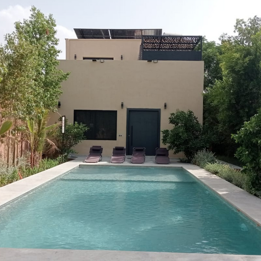 Entre l’Ourika et Marrakech, la villa Rahma vous offre un univers de bien-être avec sa piscine de 10m couleur lagon, sa suite parentale unique avec jacuzzi, sauna et ciel étoilé, le tout dans un environnement calme et boisé.