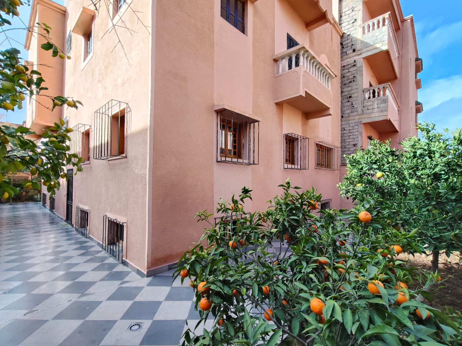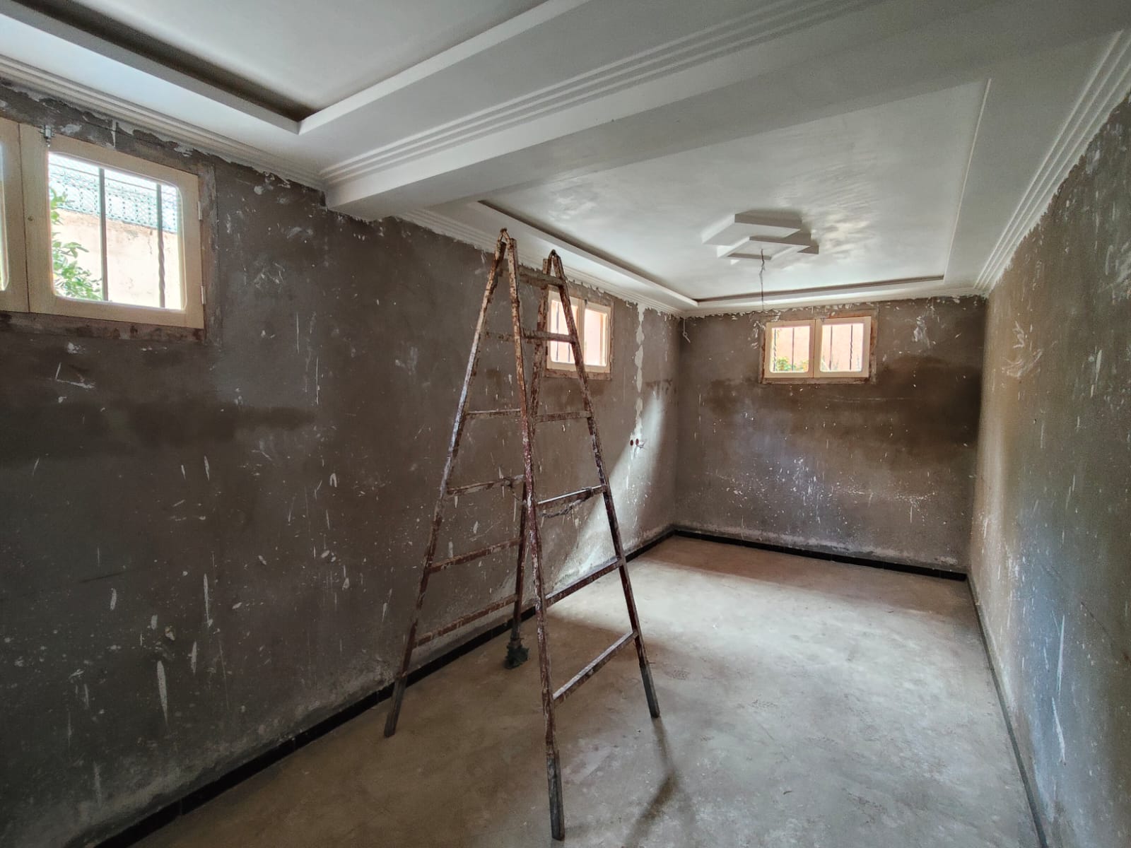 – 3 chambres semi finies au sous-sol, 2 chambres au RDC et 4 chambres au 1er étage