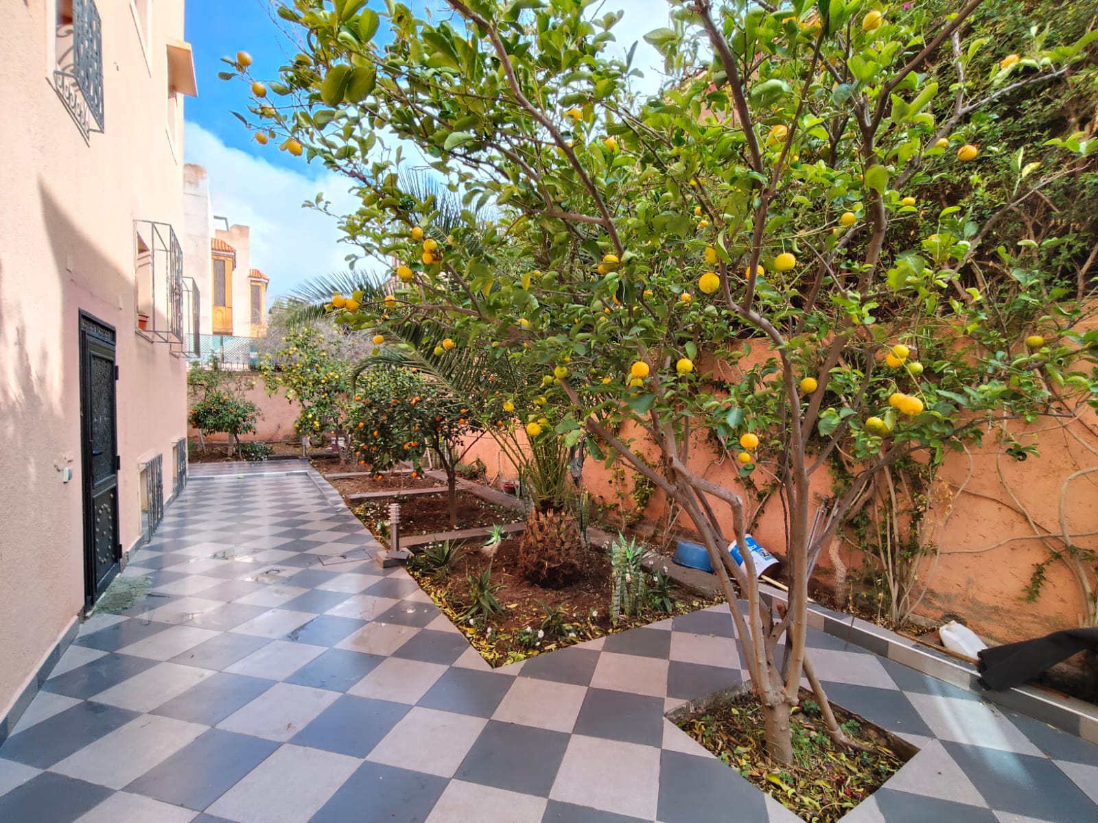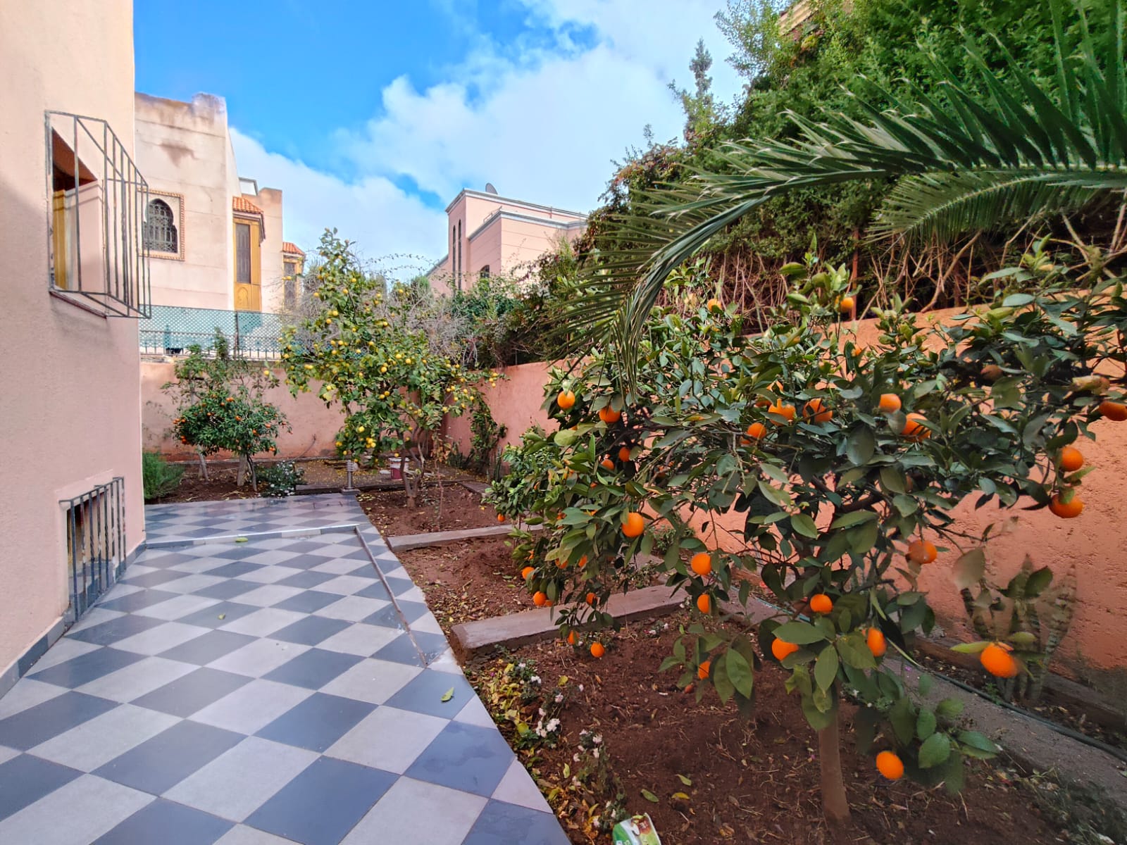 – un jardin avec des oranges, des citrons, des grenades et des clémentines